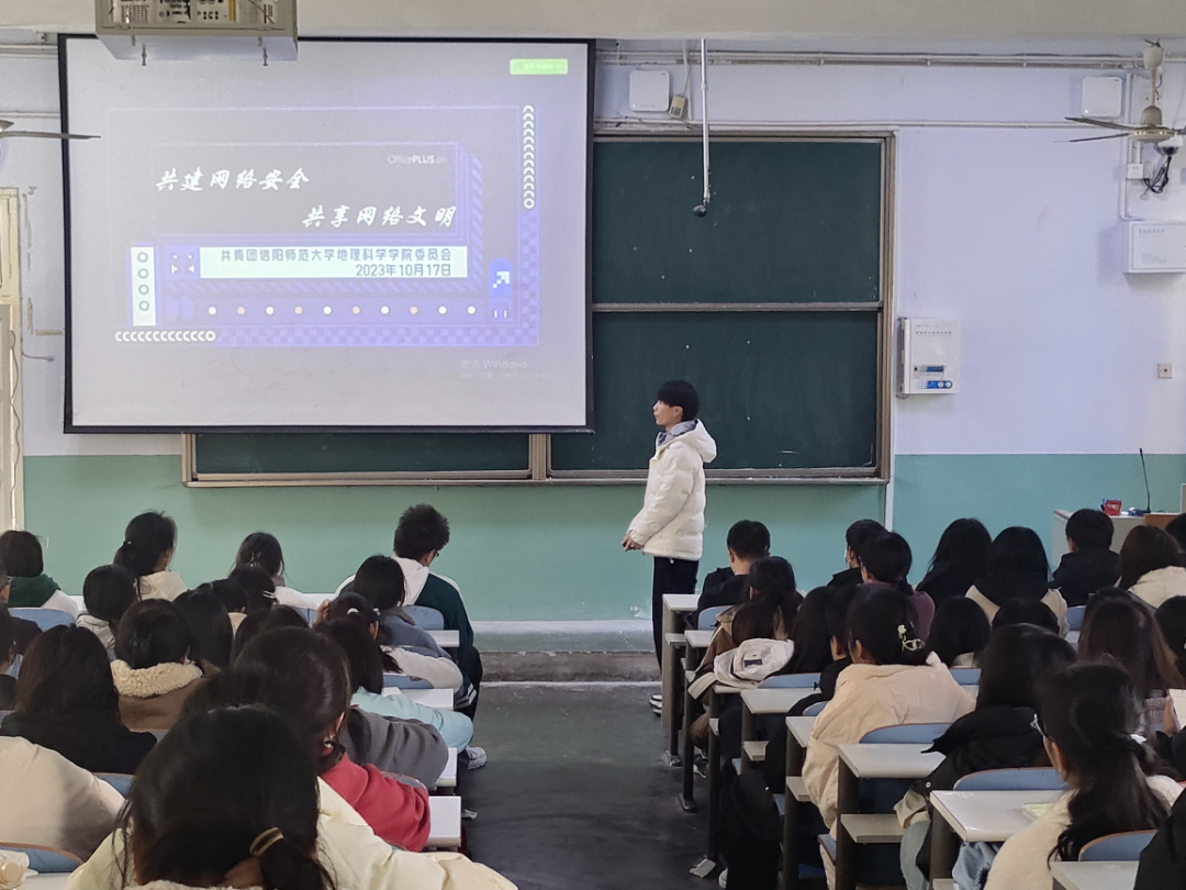 11月17日,bat365于教二梯二顺利开展“共建网络安全,共享网络文明”主题团课。bat365地理科学二、三班共同参与此次团课,团课由刘艺主持。