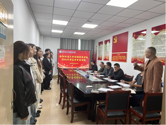 韩勇就国家奖学金评定的政策要求、评选标准与规则向评议小组及候选人作了说明,要求评议小组秉持公平、公正、公开的原则,确保每一位优秀学子的努力都能得到应有的认可。来自各年级的19位候选人依次展示成果。最终,经评议小组评分认定,刘百川、吕欣欣、闫佳慧、王佳文、张灵祺五位同学脱颖而出,成为本年度国家奖学金拟推荐人选。