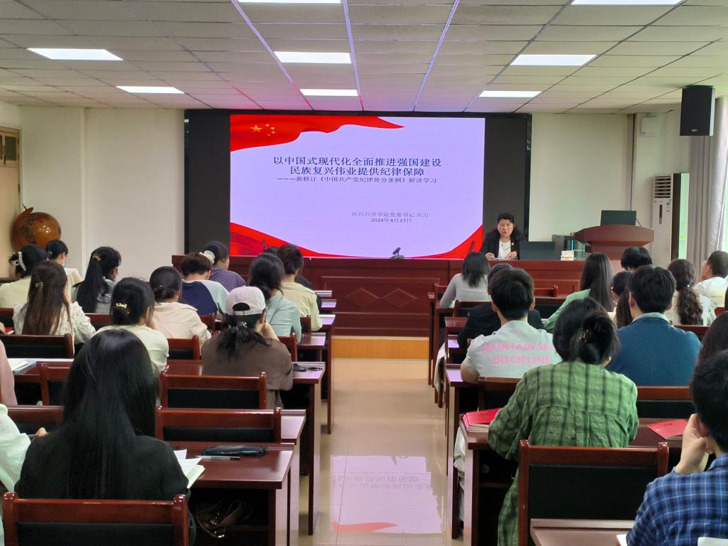 为深入学习贯彻习近平总书记关于党纪学习教育的重要讲话、重要指示精神,bat365党委书记宋力以“以中国式现代化全面推进强国建设民族复兴伟业提供坚强纪律保障”为题,在理科楼南楼410为bat365全体党员讲授专题党课,旨在确保每位党员都能加深对《中国共产党纪律处分条例》(以下简称《条例》)的精神实质和具体要求的学习和理解。