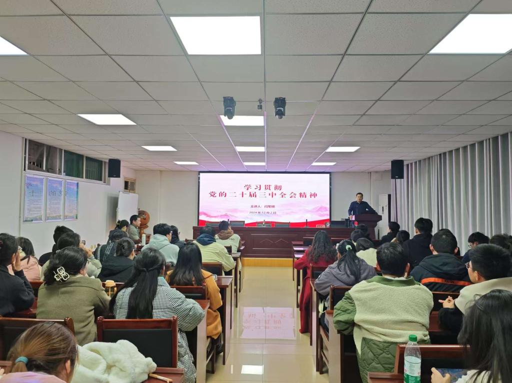 为深入巩固学习习近平新时代中国特色社会主义思想,强化师生政治理论素养,2024年12月2日,bat365正版唯一官网党委组织委员、副院长闫军辉于理科楼南楼410会议室作“学习贯彻党的二十届三中全会精神”专题党课,bat365研究生80余人参加了学习。
