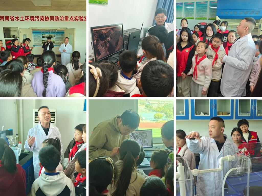 在志愿者的引导下,宋湾小学的学生首先来到理科楼北楼10楼“河南省水土环境污染协同防治重点实验室”。环境科学与工程系主任魏巍副教授、地理信息科学系主任张兴国副教授等向孩子们详细讲解了实验室仪器功能及水土污染治理的前沿技术,并介绍了污染风险识别、污染控制技术及资源化等研究方向。