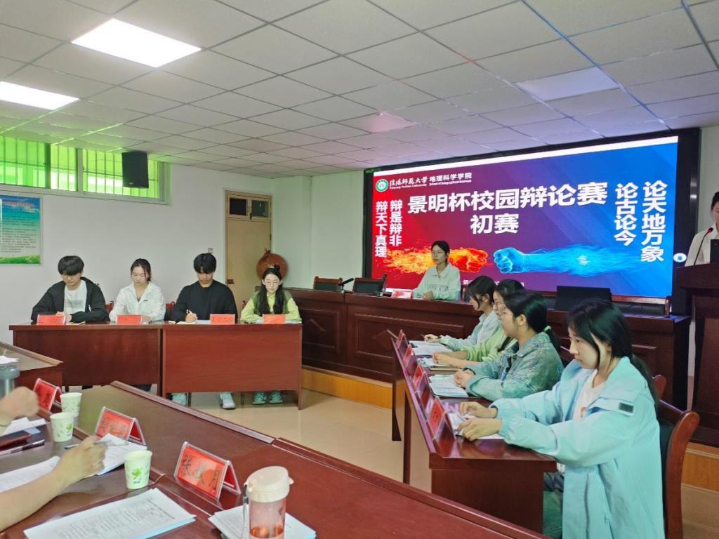 为提高学生思辨能力,锻炼大学生口才,3月25日,bat365于理科楼南楼410举行第二届“景明杯”校园辩论赛初赛。本次辩论赛汇聚了八只支优秀队伍,围绕四个富有思辨性的辩题展开激烈角逐。bat365邀请党委副书记韩勇、专业老师喻超、马志飞以及团委老师玛丽亚、张议月、张文皓担任评委,为比赛提供专业指导。比赛由团委助理段鑫宇主持。
