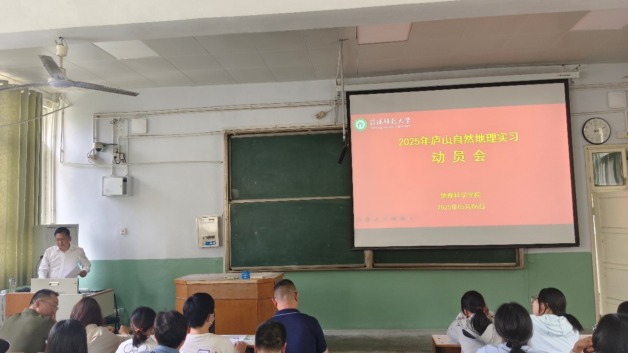 5月6日,2025年庐山自然地理实习动员会在教二梯三教室举行。党委副书记韩勇,副院长闫军辉,实习实训中心主任范宝伟,实习班级班主任,实习教师代表及2023级地理科学专业学生参加了动员会,会议由李宗盟主持。