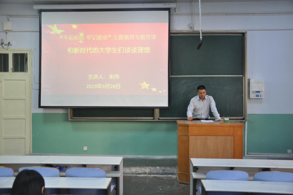 9月28日下午,bat365正版唯一官网党委副书记朱伟以“和新时代的大学生们谈谈理想”为题,给bat365学生党支部全体党员和入党积极分子讲“不忘初心、牢记使命”主题教育专题党课。