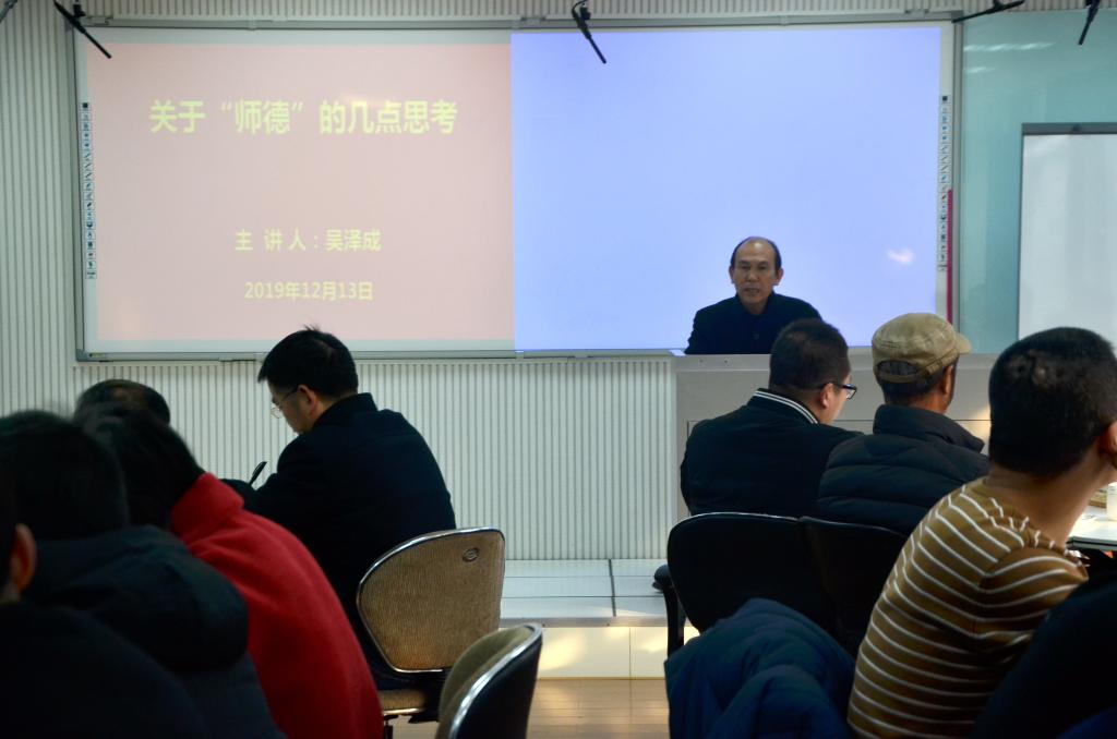 12月13日,bat365正版唯一官网于教师教育发展中心501室举办了以“关于‘师德’的几点思考”为主题的教学沙龙,学院党委书记吴泽成担任主讲人,学院全体教职工参加此次活动。活动由教学秘书蚩志锋主持。