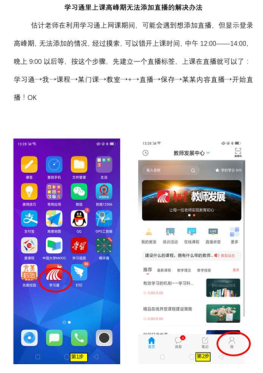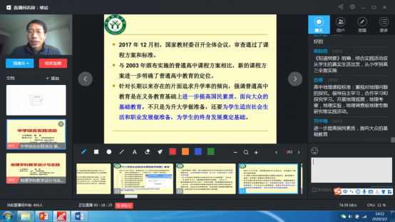 突如其来的新冠肺炎疫情,让在线教学迅速成了“网红”。教师们忙着当“主播”、录网课,学生忙着打卡、上网课,家长则帮着打印学习材料、上传学习视频,一派忙碌热闹的景象。为保证开发出高质量的适合学生的课程,老师们查找大量的资料,不断地交流讨论,制定合理的方案。颜俊老师还摸索出在中午或夜晚上时错开上课高峰时间先建立一个直播标签,上课时再使用直播的操作方法,及时解决老师在利用学习通上网课高峰期间,不能添加直播通道情况。人文地理教研室通过电话、微信群、QQ群等形式各教师之间相互交流,分享和修改备课资源,保质保量按时完成任务。