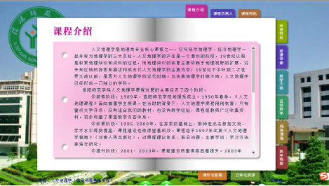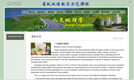 颜俊老师自主持信阳师范学院第一门省级双语教学示范课程——人文地理学以来,一直坚持坚持开展双语教学工作,还是省级精品资源共享课程《中学地理课程标准与教材分析》、省级线上线下混合式一流课程《人文地理学》的主要参与者和中国南北过渡带研究中心的创建者。坚持认为正如让我们获得营养的是面包而不是运送面包的卡车一样,导致学生学习进步的因素是教学方法而不是教学媒体。持续维护负责的教学网站,及时更新教学材料,给予广大喜爱人文地理学师生常看常新的精神食粮。