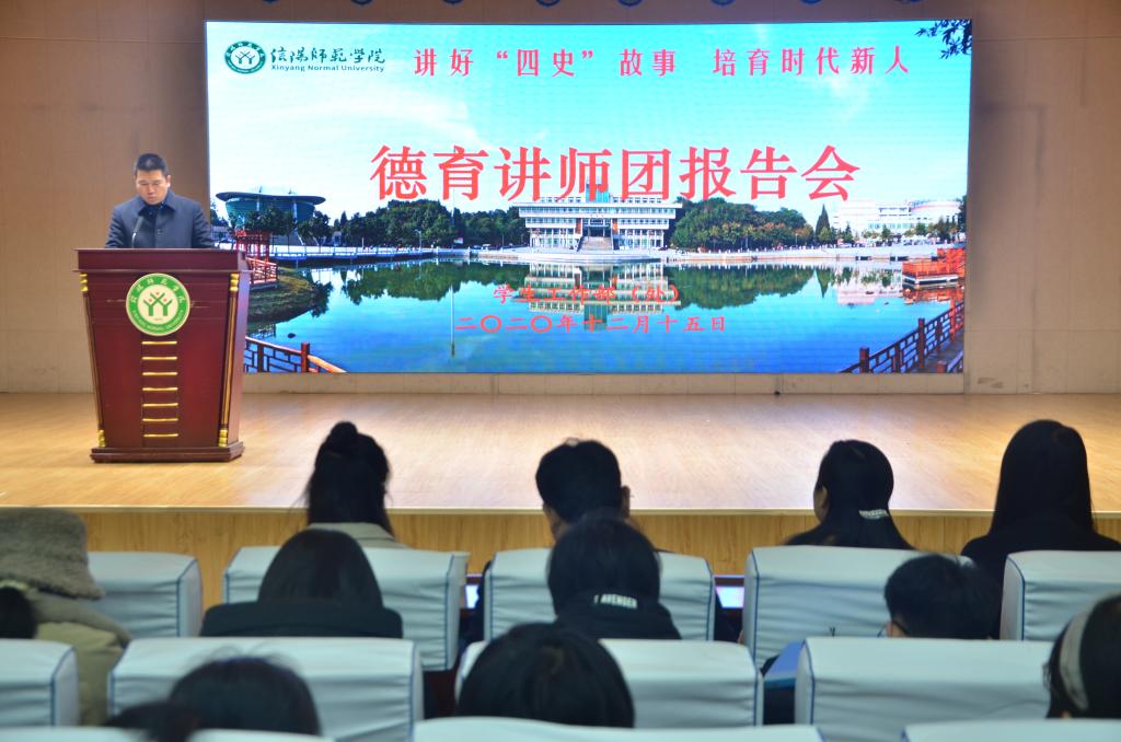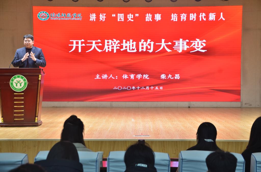 12月15日,bat365正版唯一官网于理科楼报告厅顺利举办”讲好‘四史’故事,培育时代新人”讲座。bat365正版唯一官网、数学与统计学院、生命科学学院、物理电子工程学院各100名新生在各学院辅导员的带领下参加了此次讲座,讲座由bat365正版唯一官网党委副书记朱伟主持。