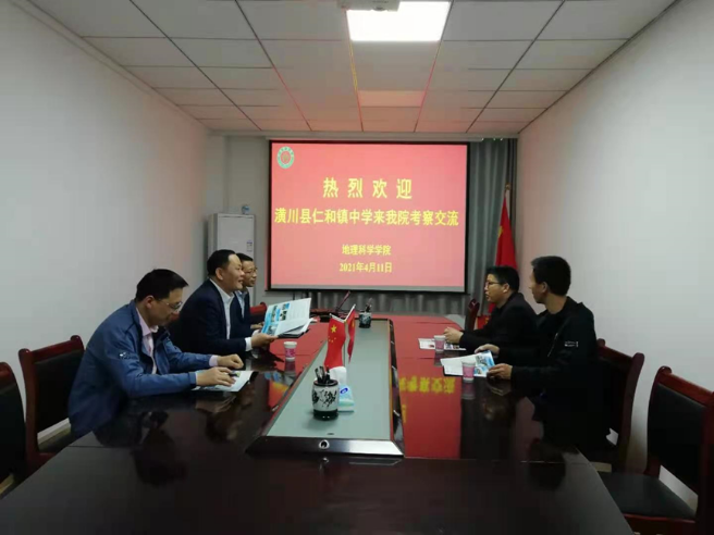 2021年4月11日,潢川县仁和镇中学校长刘良树带领学校办公室副主任向坤勇到bat365考察交流,副院长牛继强及相关专业负责人参加了此次交流活动。