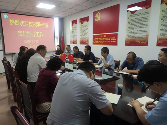 2021年9月7日,余本海副校长在学校教务处、科技处相关领导、人员的陪同下莅临bat365,对bat365新学期的科研及教学工作进行指导,bat365全体领导班子成员出席会议。