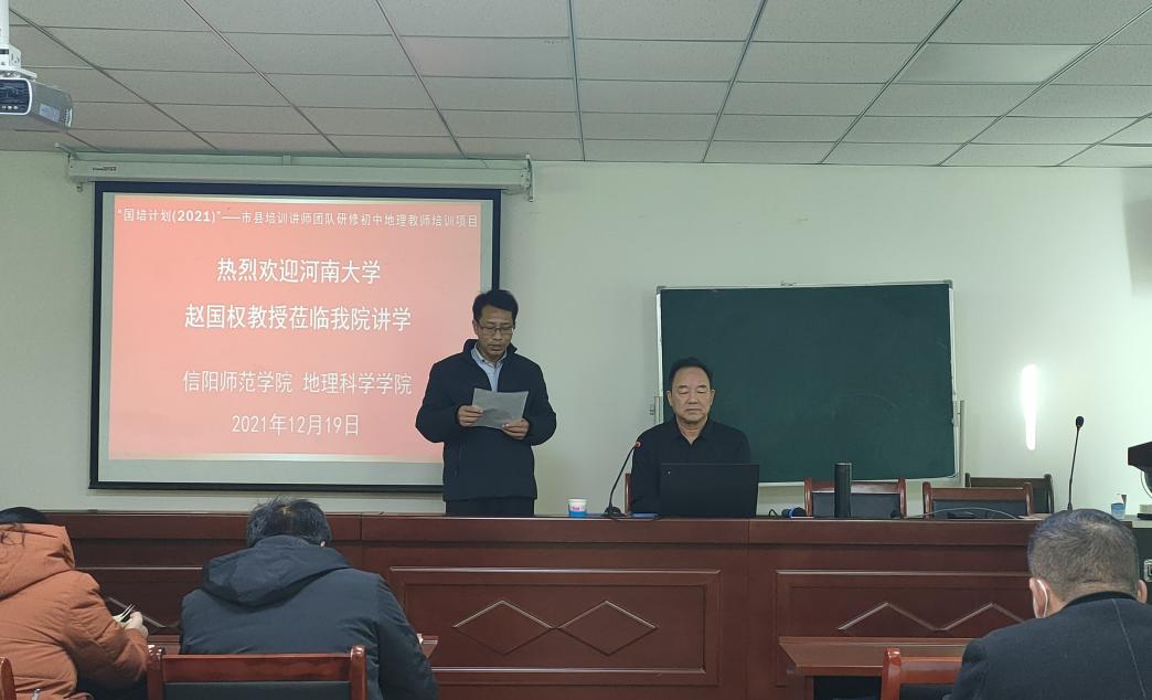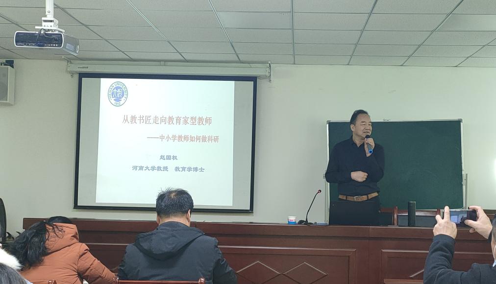 12月19日,应bat365正版唯一官网邀请,河南大学赵国权教授于理科楼南楼410会议室为我校师生作了题为“从教书匠走向教育家型教师——中小学教师如何做科研”的学术报告。我校部分青年教师、硕士研究生70余人参加了报告会,报告会由bat365正版唯一官网颜俊副院长和颜伟博士主持。