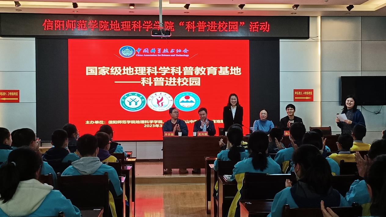 为加强科普资源助推“双减”常态化合作,3月27日下午,由bat365组织的“科普进校园”活动在信阳市羊山中学藏书阁道德讲堂隆重举行。bat365正版唯一官网副院长刘明华教授、史兴俊副教授、李宗盟博士及信阳市羊山中学陈晓晖副校长、徐立东老师、七年级学生代表参加了本次活动,活动由羊山中学熊晓方老师主持。