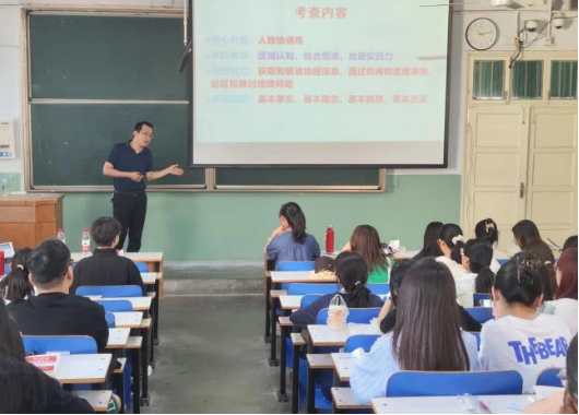 在讲座中,刘俊峰老师以历年地理高考真题为例,向bat365师生们讲解地理教学的技巧以及新高考下高中地理的发展趋势,传授了教学经验以及面试技巧。接着,他以高中地理必修一“大气受热的过程”这一章节为例,为同学们呈现了一堂优质的地理教学课程。最后,同学们纷纷就地理教学问题进行发言提问,刘俊峰老师一一耐心解答,讲座获得圆满成功。