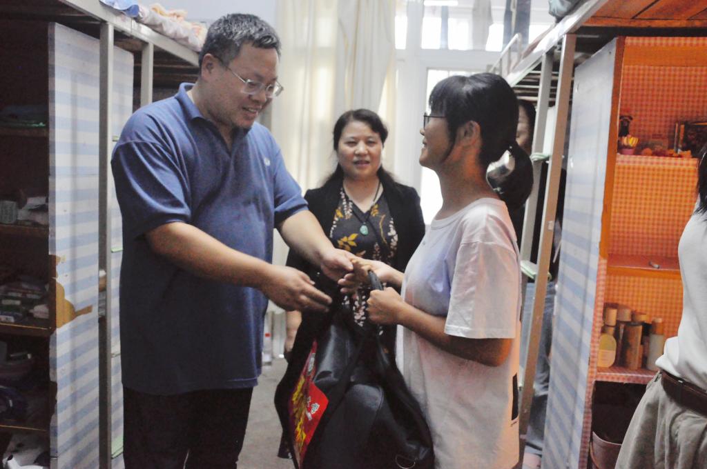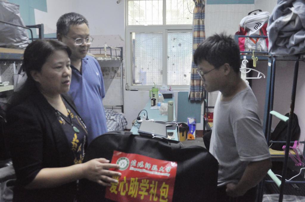 为及时了解新生的住宿和生活情况,确保新生入学工作顺利推进。9月10日,bat365党委书记宋力,副院长刘明华,党委副书记朱明,团委老师和各班辅导员共同走访宿舍,并送上爱心助学大礼包。