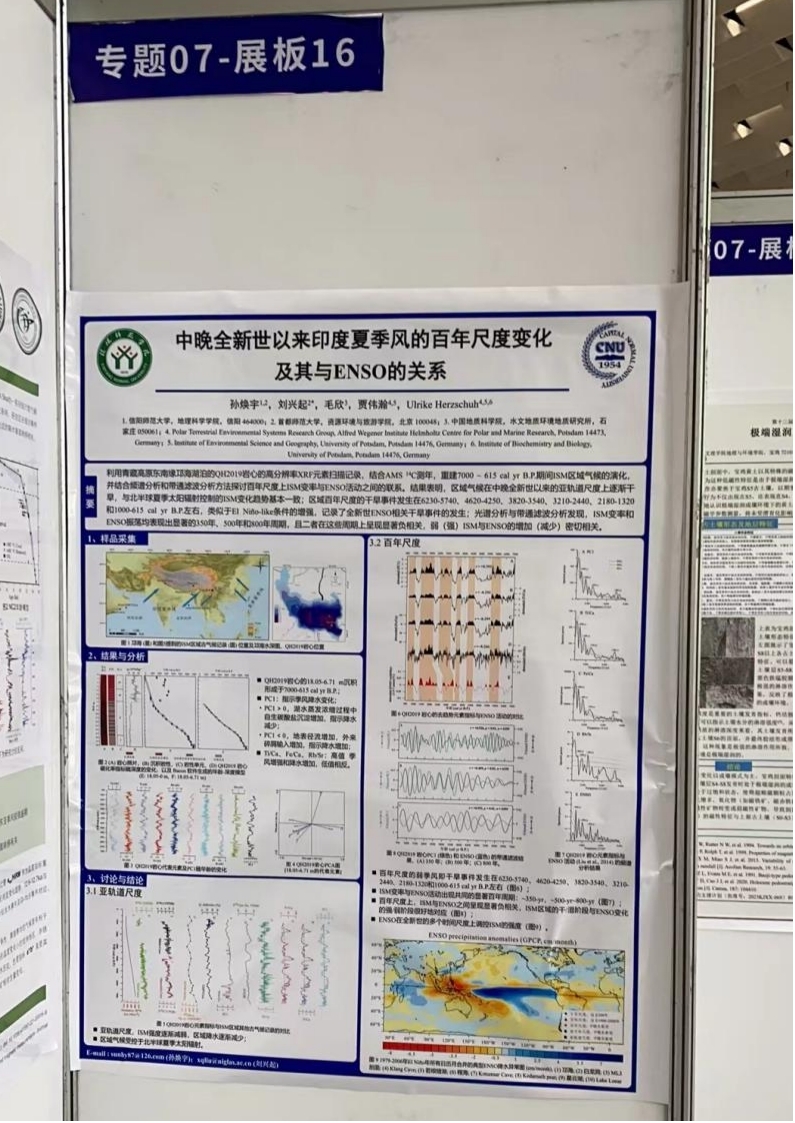 全国第四纪学术大会每四年举办一届,由中国第四纪科学研究会、中国科学院科技促进发展局、国家自然科学基金委员会地球科学部主办,中国科学院地球环境研究所、黄土科学全国重点实验室承办。大会设置了大会报告、15个专题和1个青年论坛,安排了46个特邀报告,282个口头报告和221个展板报告。bat365闫军辉副教授和李秀美副教授分别做了题为“1620年长江中下游地区极端冷冬事件重建与分析”和“喜马拉雅山南坡海拔梯度表土δDmax与GDGTs分布特征及对古高度重建的启示”口头报告,孙焕宇博士作了题为“中晚全新世以来印度夏季风的百年尺度变化及其与ENSO的关系”展板报告。