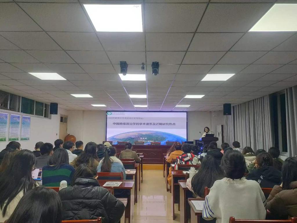 报告会上,王义民教授首先阐释了地缘政治学的概念、研究起源及发展脉络;接着,王院长从内生和外生两个方面,详细介绍了中国地缘政治学的二元结构学术谱系,并从宏观视角分析了中国政治地理学科体系现状及发展趋势;最后,王院长结合实例分析了全球气候变化对当前国内、国际环境造成的影响,并引出了“地缘身份先天不足,中国如何发挥作用?”这一话题,与同学们进行了深入探讨,现场气氛活跃。王义民教授的报告深入浅出,以别出心裁的视角、生动有趣的案例给同学们带来了一场学术盛宴,开阔了同学们的学术视野、激发了同学们的科研兴趣,与会同学均表示受益匪浅。