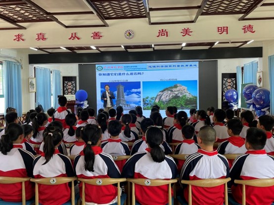 史兴俊副教授进行了题为“地震及火山活动”的科普讲座。史老师围绕“从矿物到岩石”、“地震和火山的形成”和“地震和火山灾害的防治”三个主题,以生动形象、通俗易懂的语言向参与的教师和学生介绍了矿物、岩石、地震及火山灾害的相关知识。在讲座中,史老师通过触摸岩石标本等课堂互动实践活动带领大家领略岩石的丰富多彩,通过多项实例演示了地震和火山灾害的发生过程及其危害,并详细讲述了如何预防和减轻灾害。史老师与学生进行了精彩互动,现场气氛活跃。