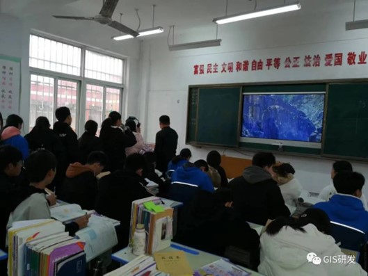 最后,李晓迪、任帅两位同学,设置好VR设备,让同学们排好队,依次体验VR地球之美。同学们带上VR眼镜后,都被真实、沉浸式的视角所吸引,感受到科技带来的非凡体验。通过本次科普活动,为初中生推广了地理信息技术、地图应用及VR地球知识,对同学们提升科学素养,提高创新能力具有重要意义。