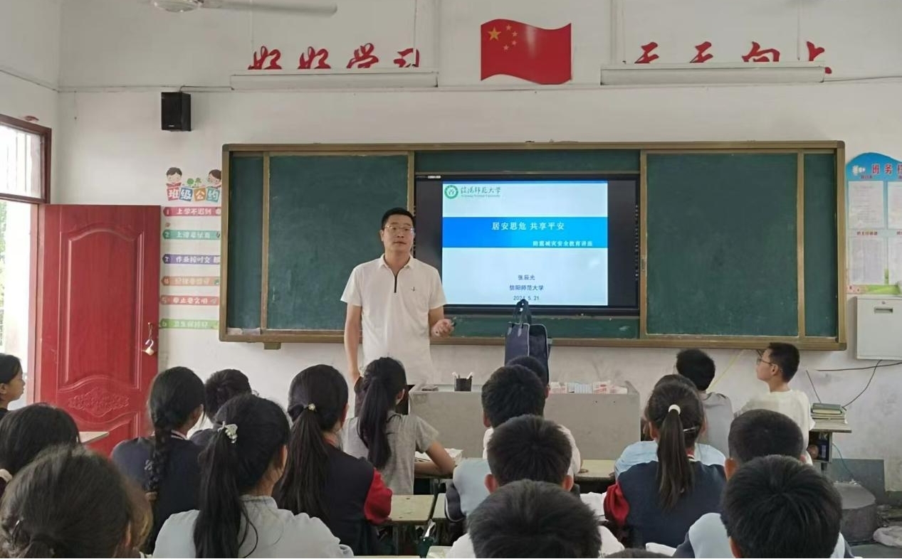 为进一步增强全社会防灾减灾意识,普及推广全民防灾减灾知识,提高避灾自救技能,5月21日,bat365正版唯一官网地理科学国家级科普基地成员赴明港三中开展防灾减灾宣讲活动。bat365正版唯一官网副院长刘明华教授、张辰光副教授、张兴国副教授、史兴俊副教授、郜慧副教授、张宇欣博士以及明港三中部分教师、学生100余人参加了科普活动。