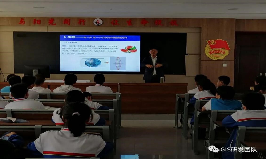 2020年5月16日,应信阳市浉河中学邀请,本科普教育基地张兴国副教授为同学们作了题为“数字地球”的科普讲座。首先浉河中学李金枝老师介绍了本次活动的背景、意义、目的、内容等基本情况。然后,张老师从数字地球基础(地球形状、给地球建个坐标系统、球面变平面、通过矢量(点线面)和遥感影像记录地表信息)、应用(大众出行、自然资源管理、智慧城市、三维校园、疫情防控)、实践(遥感影像判读、空间分析、VR可视化)三大方面进行了详细介绍。最后,在互动环节,给同学们发放了A0幅面信阳市遥感影像和地图纸质地图,在老师们的指导下学习阅读、判读遥感影像,了解信阳市重要地标方位,分析讨论家里位置及上学路径等。本次实践中,也配置了VR设备,每位同学都通过谷歌地球VR版、校园VR版等软件体验了典型地理场景下身临其境的震撼。通过本次活动,让初中生加深了对地理学的理解,拓宽了视野,增强了对地理课程的兴趣,将会对后续学习发挥重要作用。