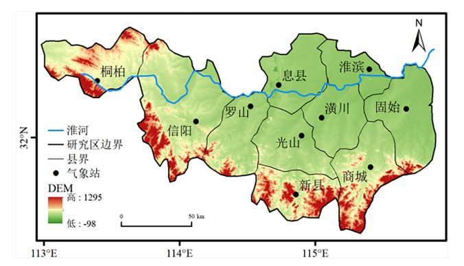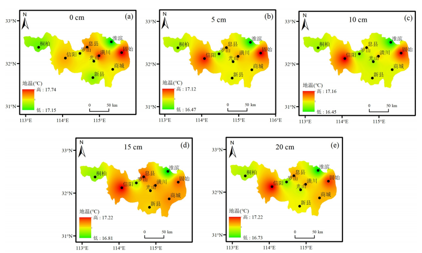 淮河源位于河南省南部,东接安徽,西南与湖北相邻,是中国的南北气候过渡带,具有独特的地域优势,对于科学理解典型区域气候变化响应机制尤为重要。随着近些年来全球变暖问题日益严峻,区域地温时空变化引起学术界的密切关注。地温是下垫面和不同深度土壤温度的统称,其变化对种子的萌发、作物的生长及产量有着重要的影响。虽然已有学者分析了淮河源地区气候变化,但鲜见系统分析淮该地区浅层地温时空变化特征及其对全球增暖停滞响应的研究。