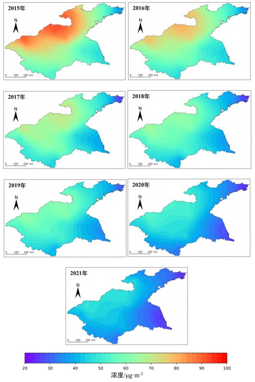 图12015~2021年淮河流域PM2.5空间分布特征
