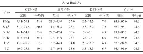 表1淮河流域PM2.5及其组分的各分量方差对原始序列方差贡献率/%