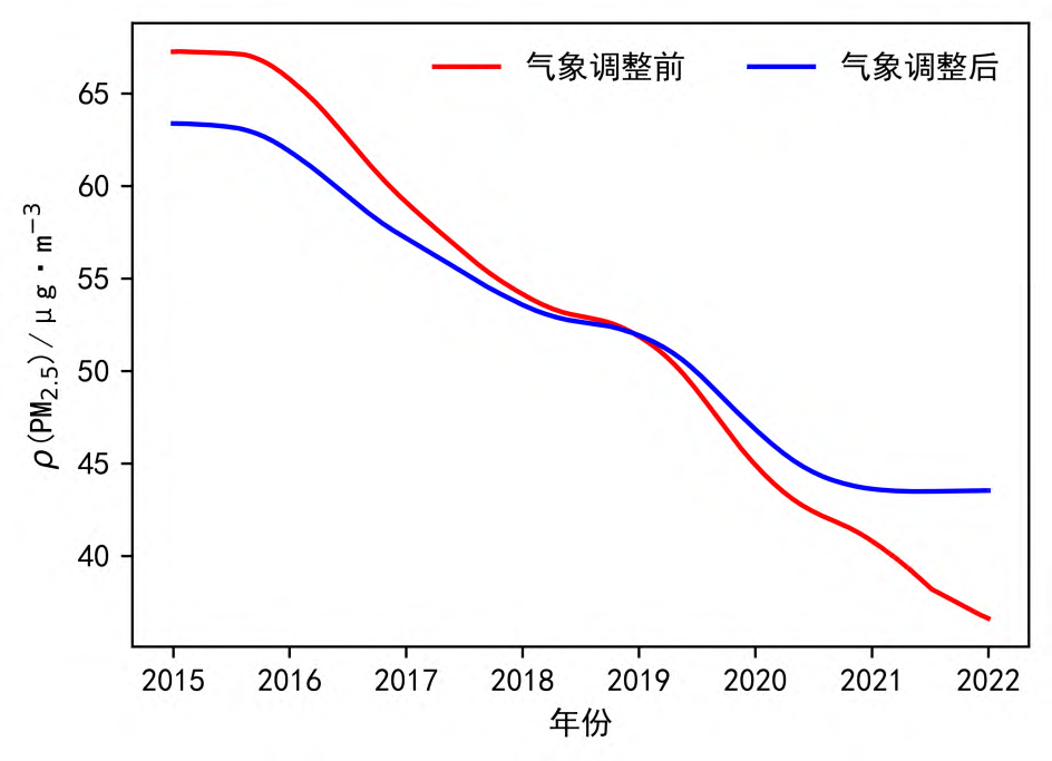 图22015~2021年淮河流域气象调整前后PM2.5浓度的长期变化趋势