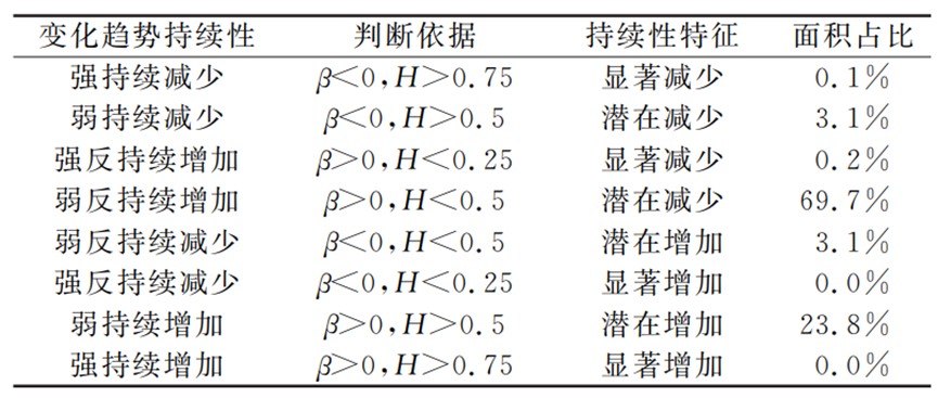表1淮河生态经济带NPP变化趋势持续性特征面积占比