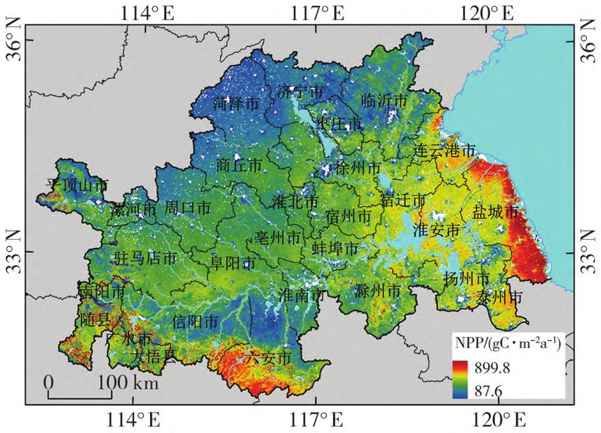 图12000—2022年淮河生态经济带NPP年均值空间分布