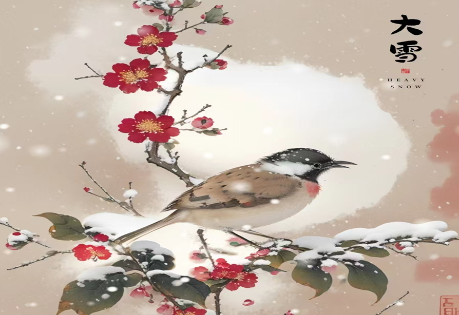 “大雪”是二十四节气中的第21个节气。 它通常在每年公历12月6——8日交节。大雪节气标志着仲冬时节正式开始,此时天气更冷,降雪的可能性比小雪节气时更大,范围也更广,常常会出现“檐挂冰乳,阶铺银床”的雪景。大雪节气时,太阳直射点持续向南移动,北半球接收到的太阳辐射进一步减少。在北半球中高纬度地区,地面热量散失加剧,气温不断下降。这使得北方地区的气温常常降至很低的水平,进入寒冬状态。例如,我国东北和西北地区,在大雪节气前后,由于太阳高度角小,日照时间短,气温普遍较低,为降雪提供了寒冷的气候条件。在大雪节气,部分水汽来源于海洋。对于沿海地区,如我国的山东半岛、辽东半岛等地,海洋的暖湿水汽在冷空气的作用下,容易形成降雪。