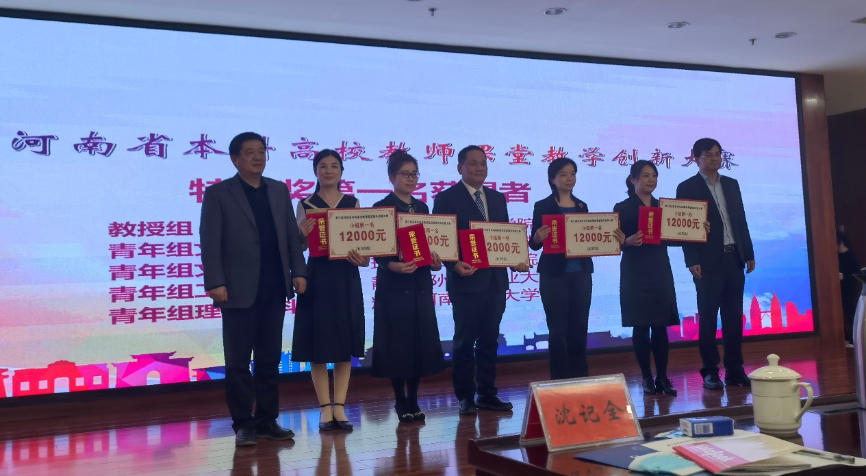 河南省本科高校教师课堂教学创新大赛是贯彻落实教育部《关于加快建设高水平本科教育全面提高人才培养能力的意见》和新时代全省高等学校本科教育工作会议精神的重要举措,大赛聚焦教学创新、推动教学革命,不断提高教师教学创新能力,引导高校教师潜心教书育人,打造高校教学改革的风向标。根据比赛工作方案,选手经过省级初赛、复赛二轮角逐后,共推荐85人进入决赛,其中教授组20人,牛继强教授获得教授组特等奖第一名,并在颁奖典礼上受邀为同行作了教学示范展示。