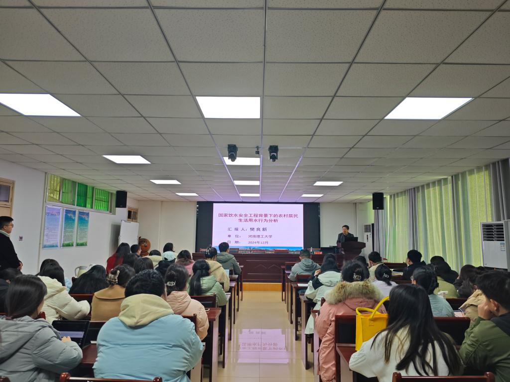 早上,樊教授于理科楼南楼410会议室为学院师生作了题为“国家饮水安全工程背景下的农村居民生活用水行为分析”的学术报告。bat365正版唯一官网副院长颜俊、潘晓芳,青年教师以及研究生和本科生等70余人参加报告会,会议由颜俊主持。